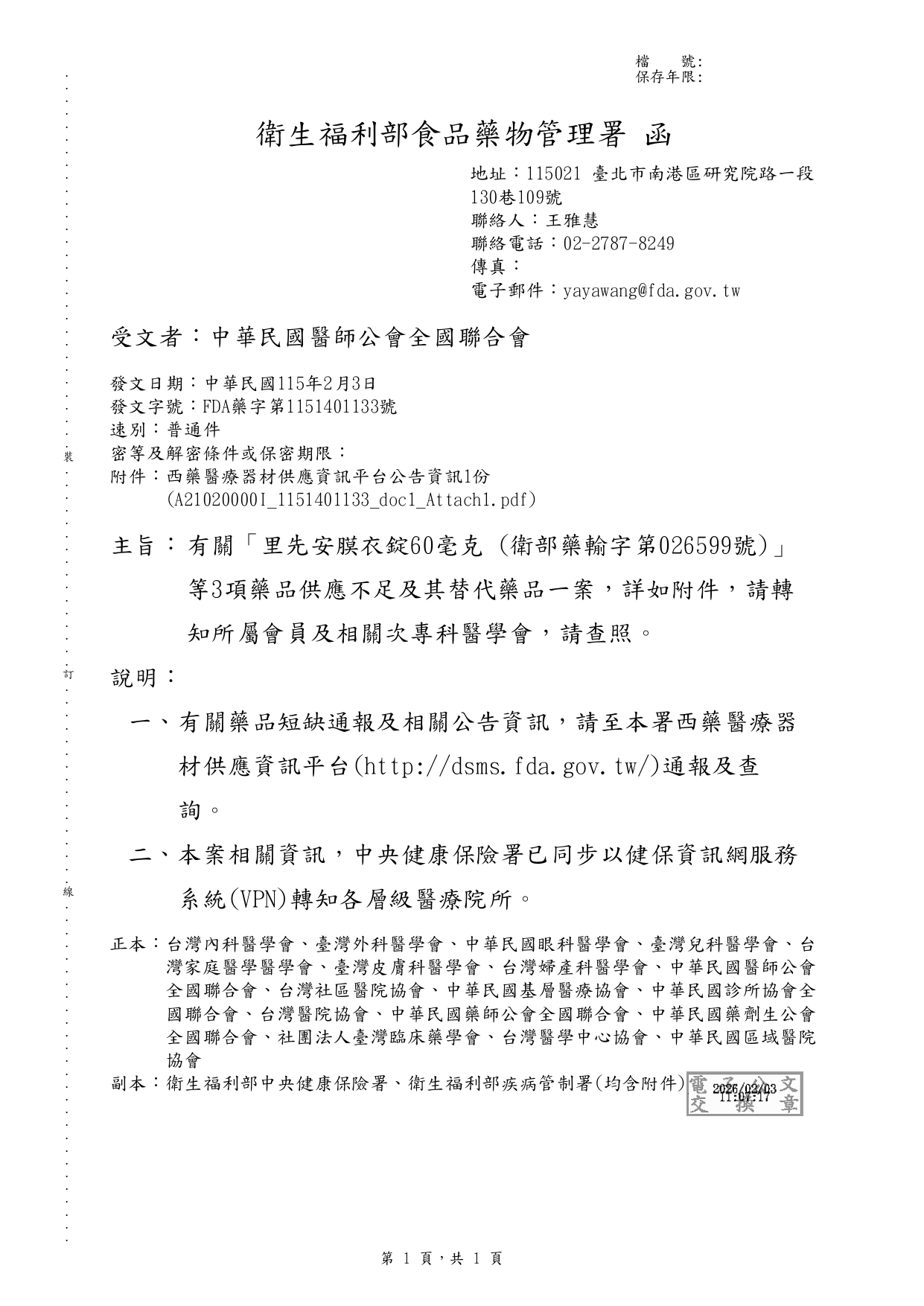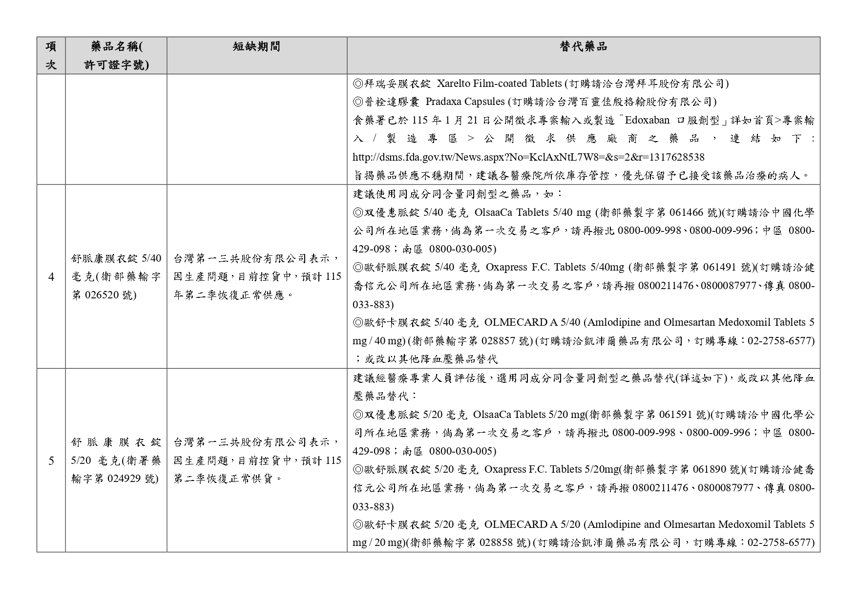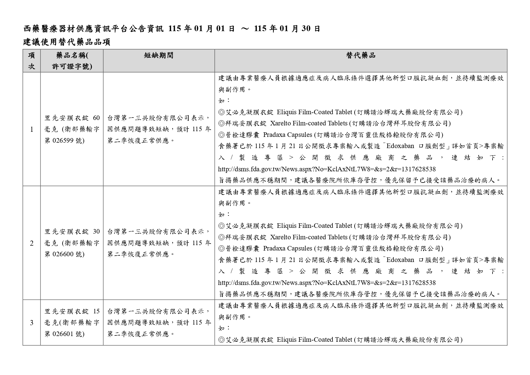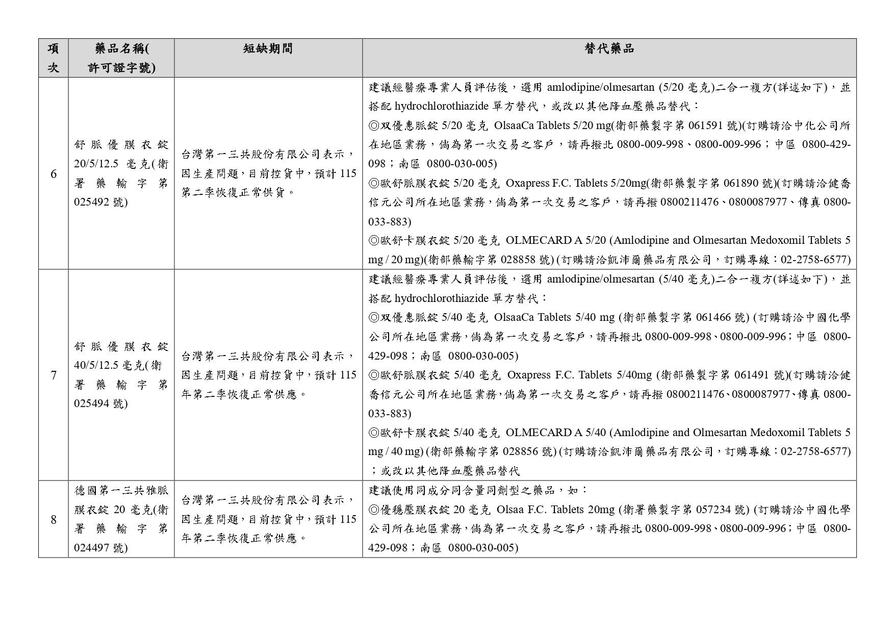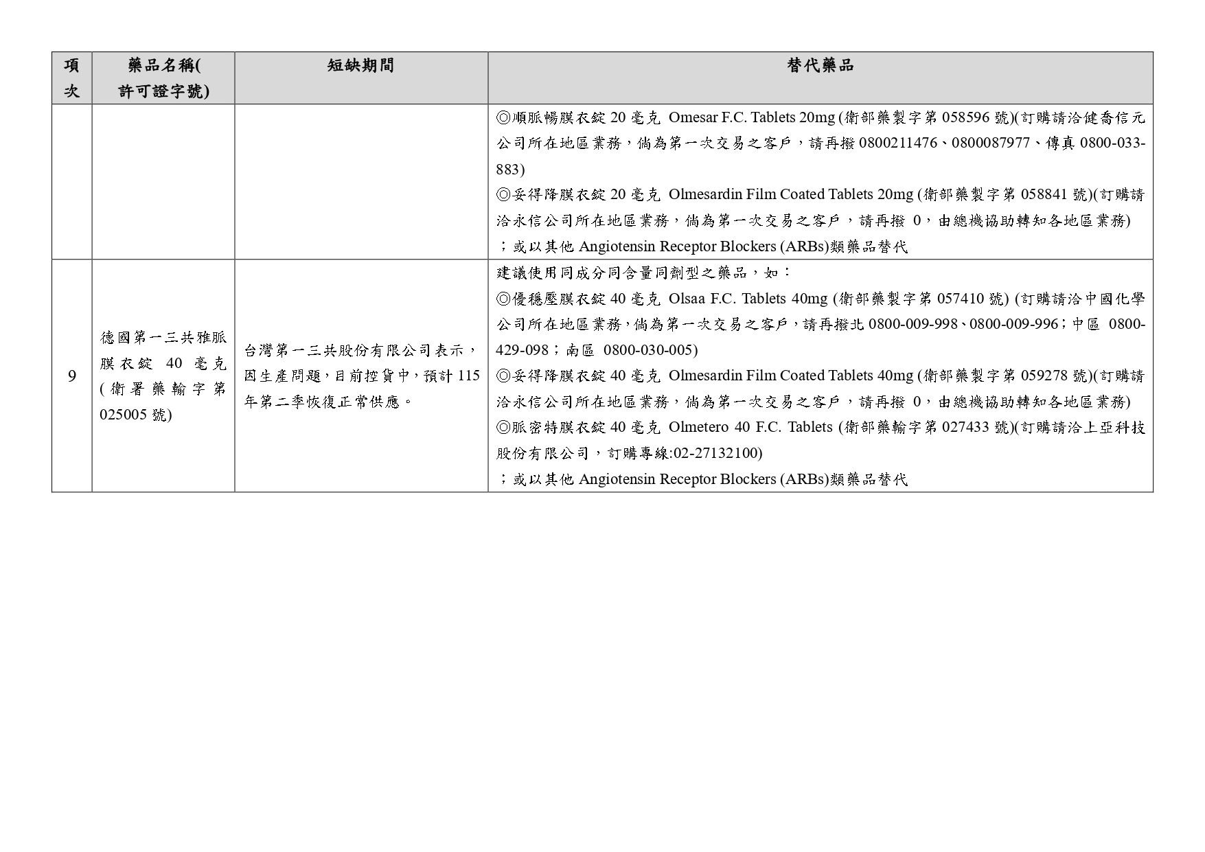 第一三共缺貨產品替代方案公文