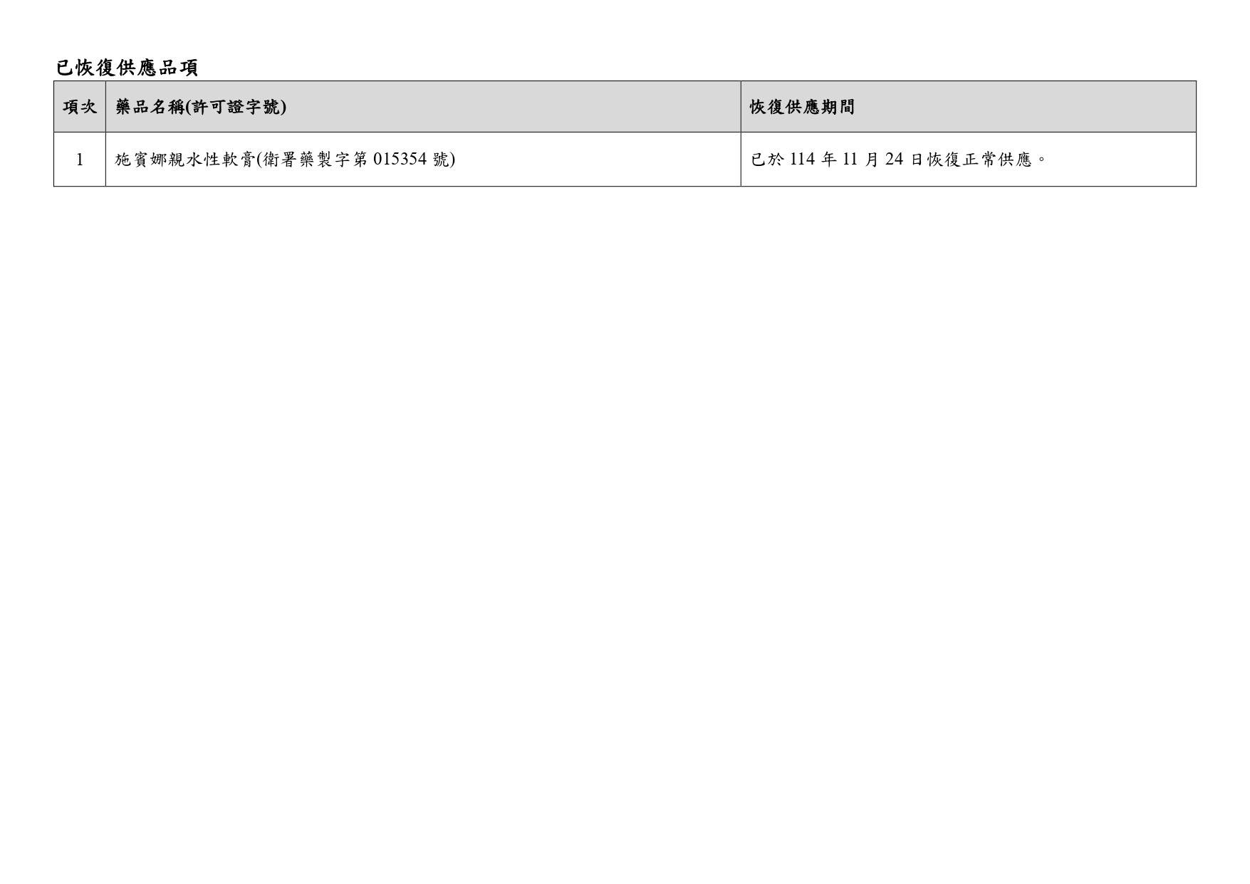 說明:執行例行性藥品優良規範(GMP)查核改善作業,因調整賦形劑比例,